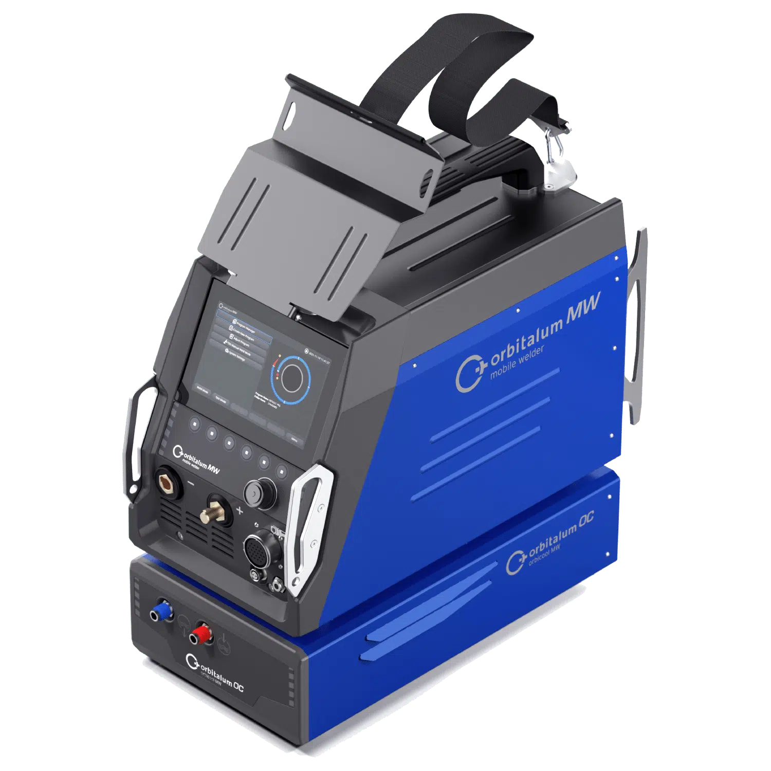 Mobile Welder är utrustad med praktiskt bärhandtag och axelrem så att du enkelt kan bära med dig strömkällan. Dessutom väger maskinen enbart 21kg! Inklusive ORBICOOL MW. Den lätta men robusta designen är utrustad med toppmodern informations- och kommunikationsteknik som bygger på styrkan hos ORBIMAT 180 SW.