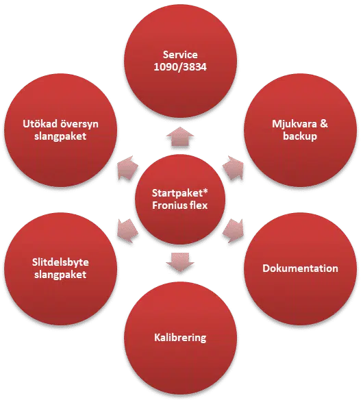 Fronius flex gör det möjligt att välja nivå på servicen med olika tillägg. Med detta koncept skräddarsys servicen efter de behov man har.